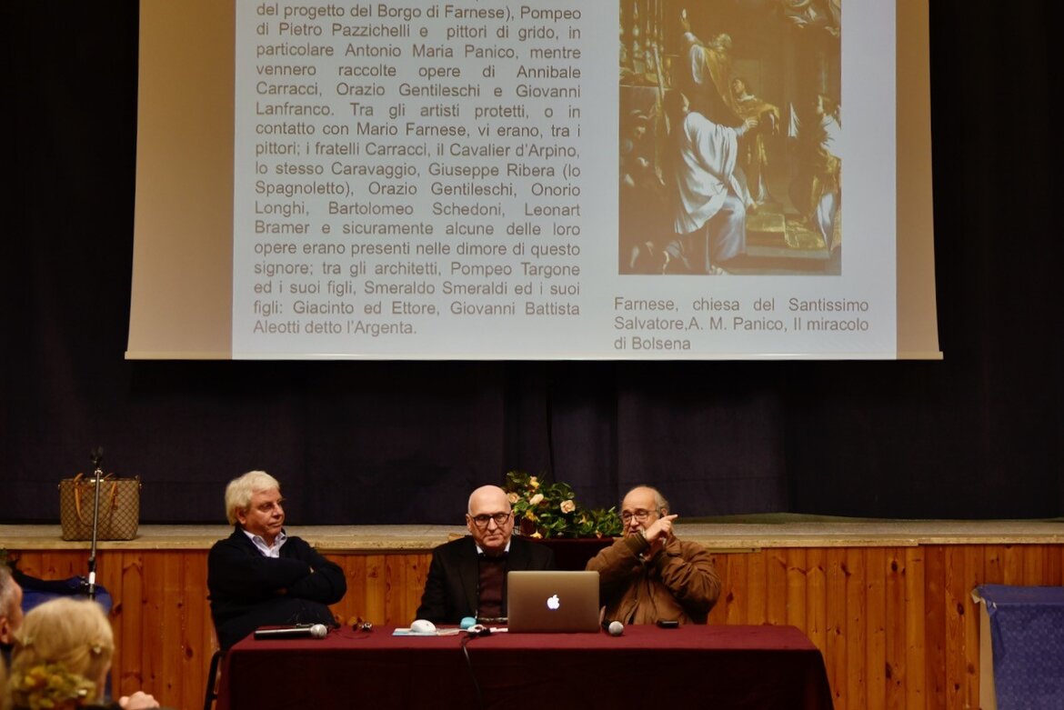 Hanno preso la parola, in ordine: Tiziana Mancini (presidente dell'Associazione Socio Culturale Farnese e Tuscia Viterbese, organizzatore dell'evento), il dottor Bonaventura Caprio (storico Farnesiano e giurato del concorso letterario la "Farnia d'Oro", nonché collaboratore dell'Associazione di lunga data), il Professor Vinicio Serino (antropologo, storico e giurato del nostro premio letterario, più volte relatore in convegni organizzati dall'Associazione) il Dottor Romolo Lucarelli (storico Farnesiano e da tempo collaboratore dell'Associazione, nonché giurato anch'egli del premio letterario) ed il dottor Mariano d'Anza (che in più occasioni si è prestato come relatore in diversi eventi culturali organizzati dall'Associazione).